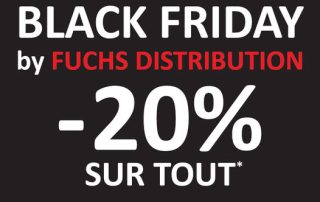 C’est parti pour le BLACK FRIDAY ! Du 24 au 28 novembre, Fuchs Distribution vous offre 20% de réduction sur tout le magasin Ne manquez pas cette occasion de faire de belles affaires avant la fin d’année !